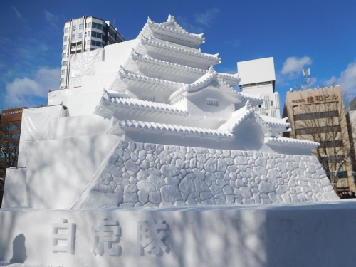 8丁目会場の自衛隊が制作した大雪像「会津 鶴ヶ城」は見事であった。