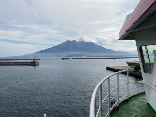 船の先頭に行って見ると、憧れの桜島がどんと海に浮かんでいるのが見えて感動した。