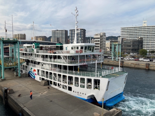 ちょうど桜島から戻って来たフェリーが入港するところだった。