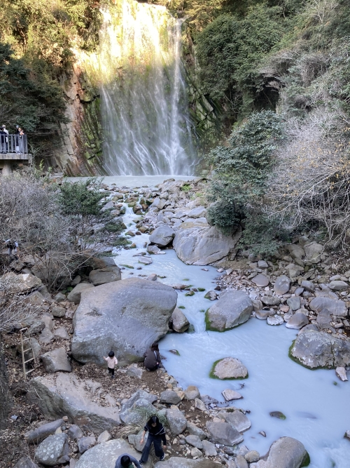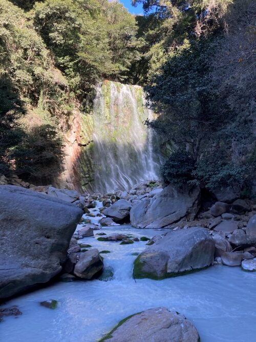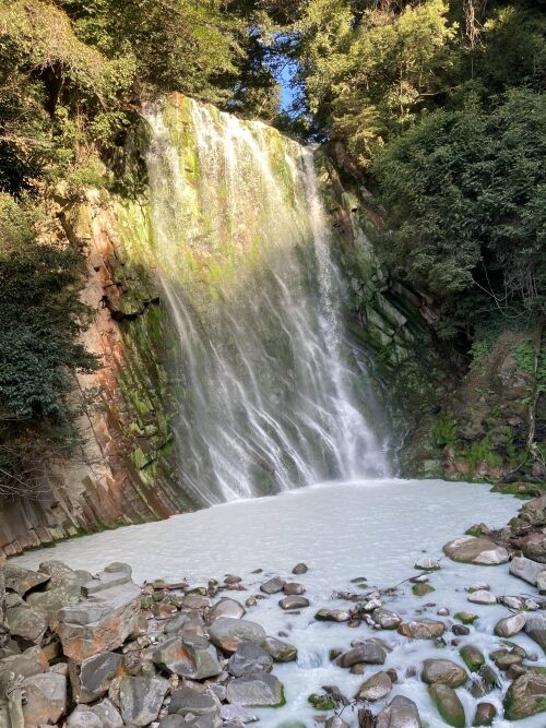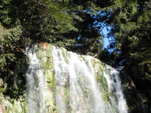 丸尾滝は高さ23メートル、幅15メートルと、決して大きな滝とは言えないのだが、丸尾滝のユニークな点は、落ちる水が温泉水であるというところだった。