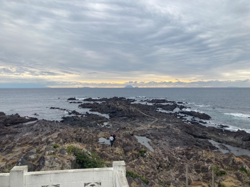 展望台からは岬の方まで見渡すことができ、何人かの観光客が岩の上を歩いている姿が見えた。