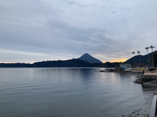 枚聞神社を出発した後は指宿観光のフィナーレ、池田湖を目指した。