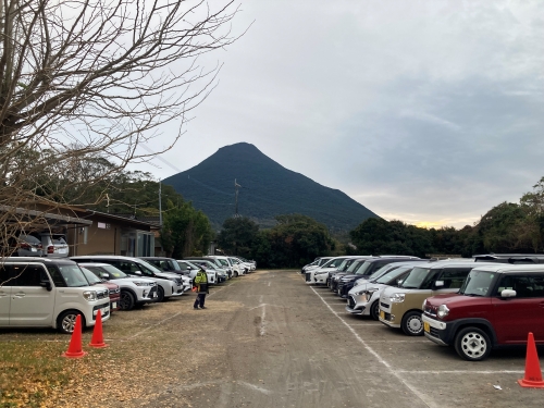 枚聞神社専用の駐車場は狭すぎるため、臨時の駐車場が設けられており、係の人が車を誘導していた。