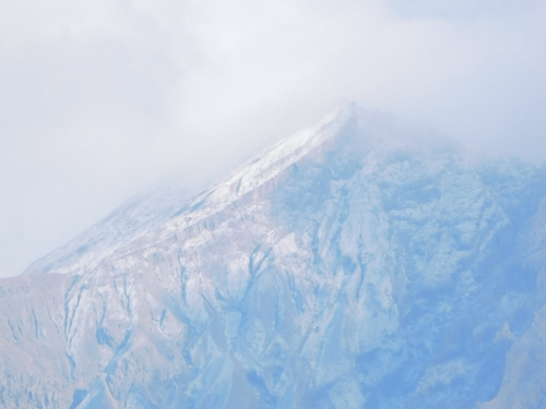 みちょるびんは、3日前に見た桜島と比べ、山の上の方に白いものが覆っているように感じたので、雪ではないか?という疑問を抱いていた。