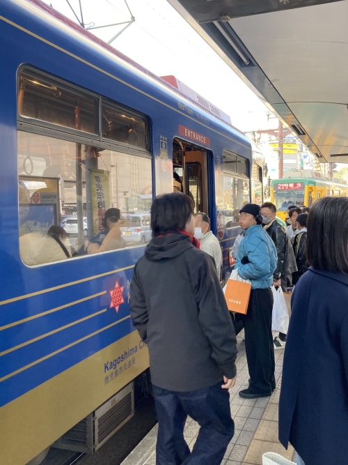 朝日通りからは路面電車が走っていたので、路面電車に乗って鹿児島中央駅まで戻ることにした。