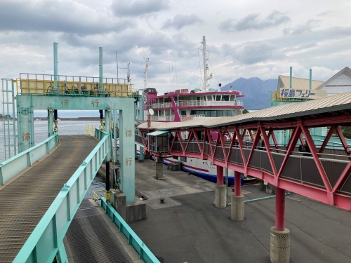 「運賃は後払いです、そのままお乗りください」と歓迎ムードだった鹿児島港とは対照的に、桜島港ではチェックが厳重で、フェリー乗り口には眼光鋭いおじさんが待機していた。